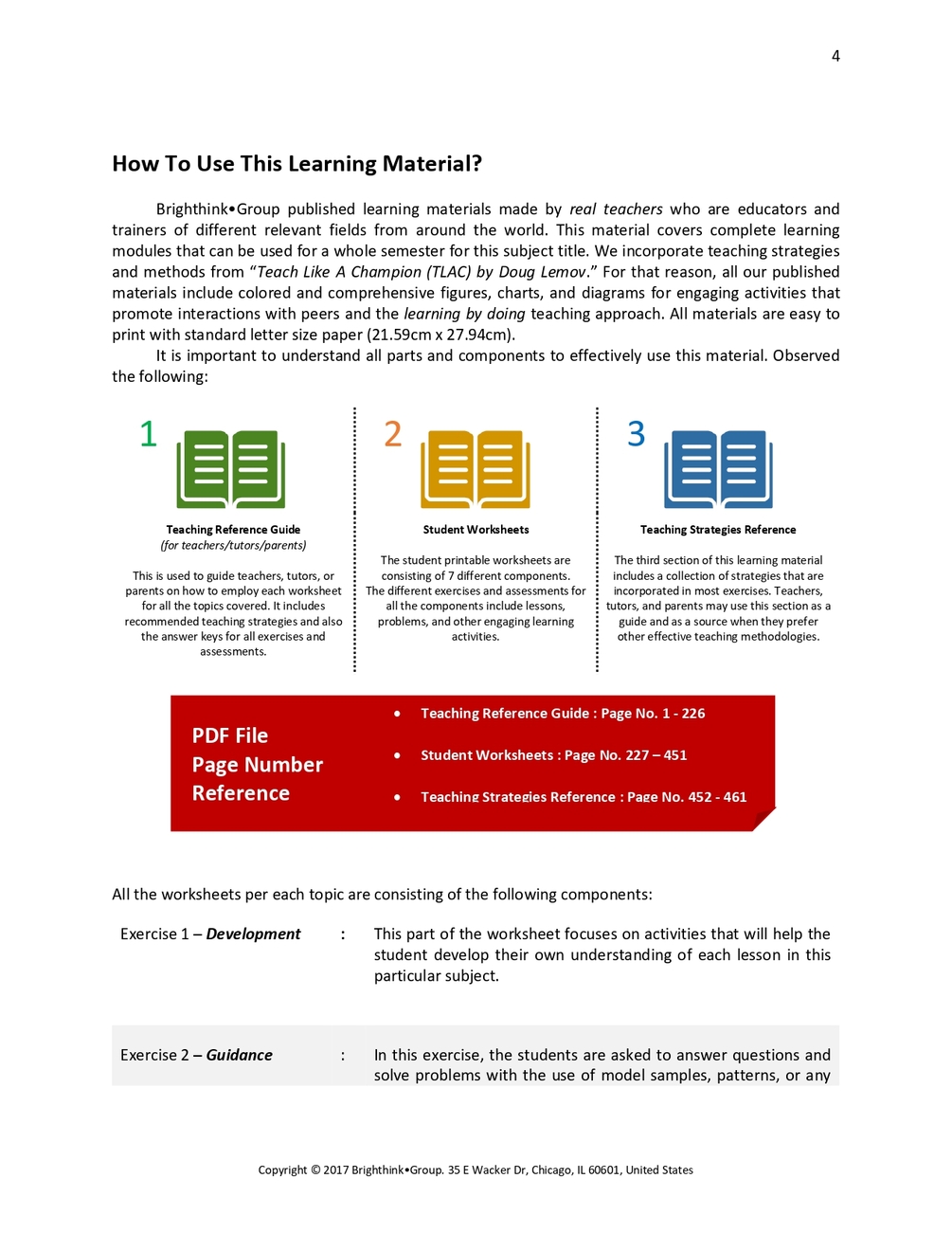 • Includes engaging activities that promote interactions with peers and the learning by doing teaching approach.