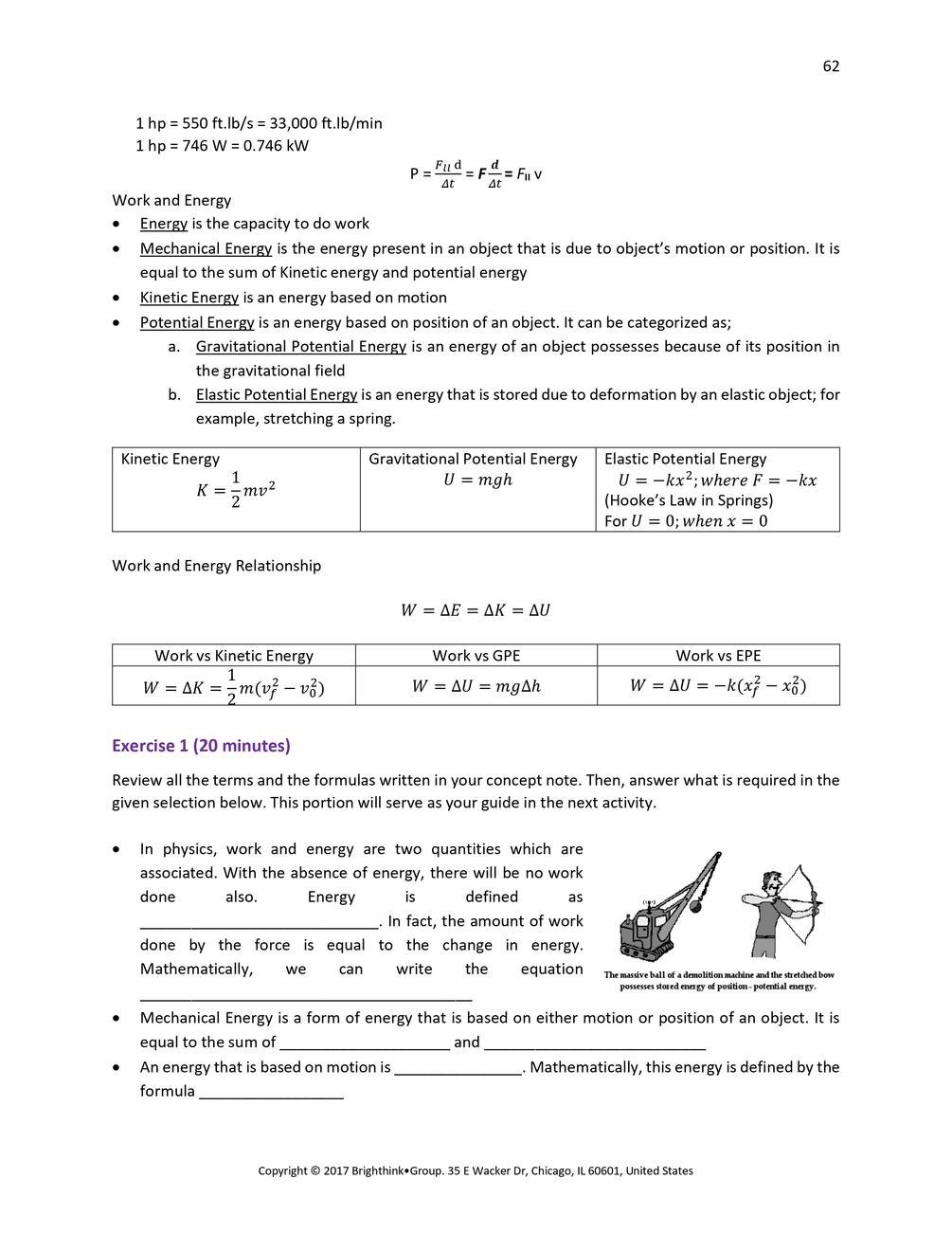 • Calculating Work Done And Power; Describing Work And Energy And Their Relationship